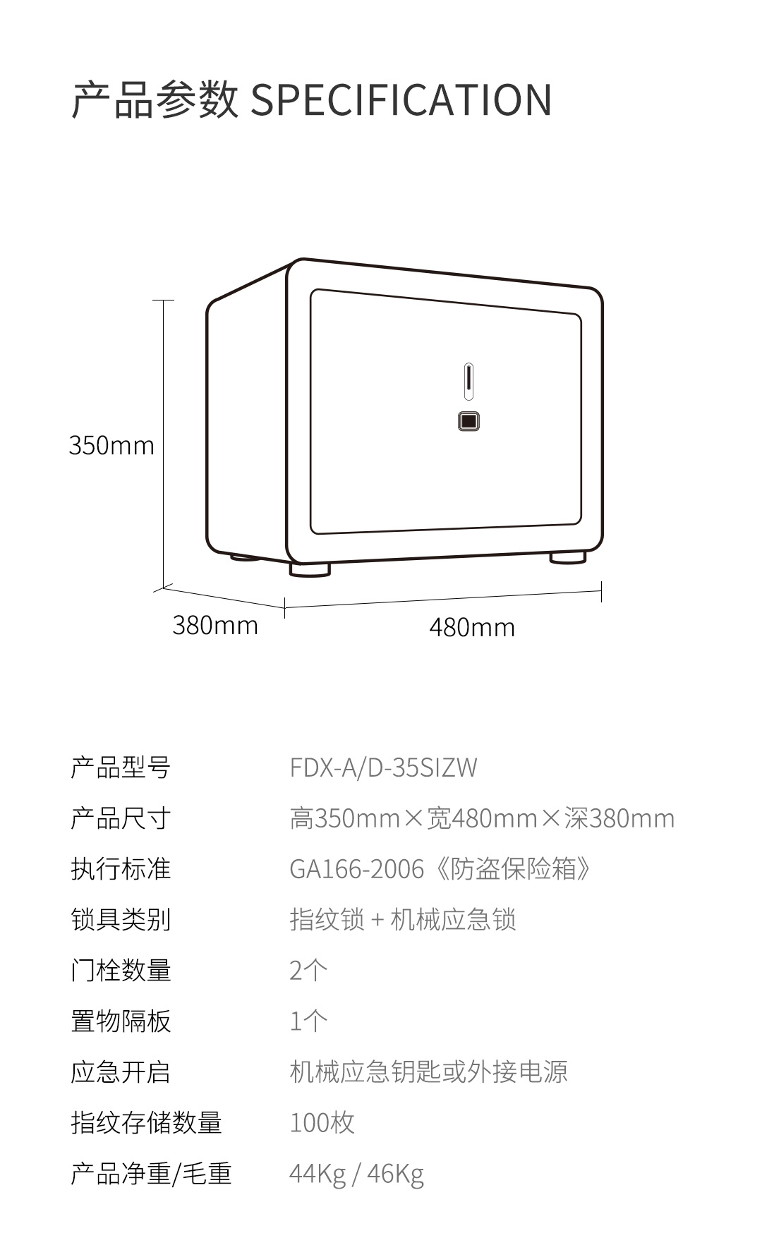 卡嘜安諾指紋系列3C認證保險箱D-55SIZW尺寸說明:550高*500寬*380深mm(含底座) 重量:80kg